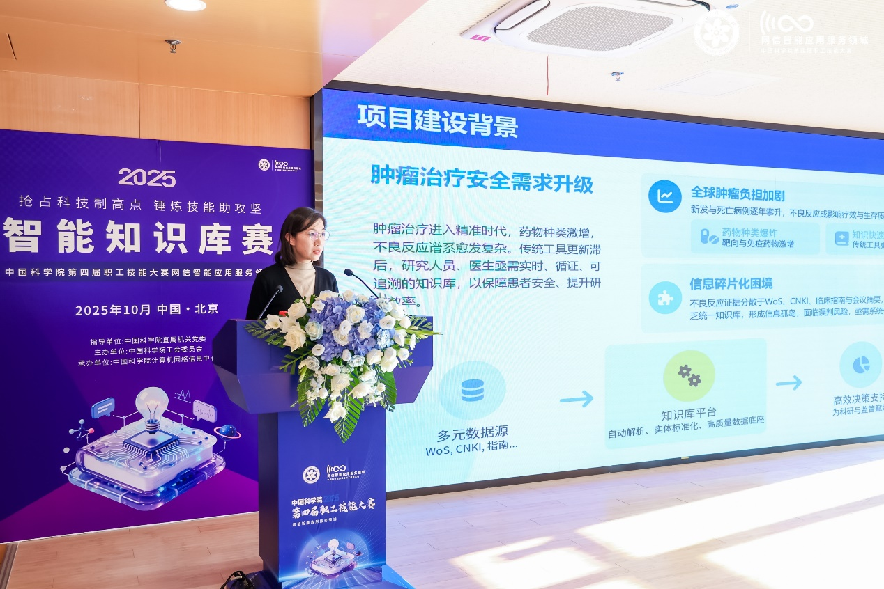 經(jīng)過初賽階段層層篩選,營養(yǎng)與健康所信息中心數(shù)據(jù)資源中心副主任姚遠(yuǎn)在決賽中作了項目路演、技能實操等多輪展示,憑借項目的創(chuàng)新性、技術(shù)成熟度和團隊表現(xiàn)脫穎而出,榮獲網(wǎng)信智能應(yīng)用服務(wù)領(lǐng)域智能知識庫賽道三等獎。